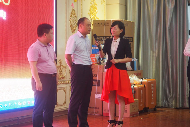 廖總在抽取一等獎(jiǎng),據(jù)說獎(jiǎng)品很大,笑得這么開心,看來今天沒少簽單
